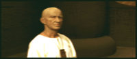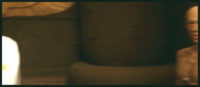 – zaćmienie – kontynuacja, scena przed świątynią i druga scena – jednoujęciowa, równoległa w czasie; silne zderzenie z innym charakterem obrazu – statyka kamery, nieruchomość bohaterów, wywarzona kompozycja kadru (il. 38), krzyk królowej z offu: „synu…”, panorama na fasadę pałacu, z którego wybiega rozhisteryzowana królowa (il. 39), panorama z powrotem za nią, do spotkania z Ramzesem, na końcu kadr izoluje królową – kamera ustatycznia się w napiętej diagonalnie kompozycji, rozpacz królowej zamiera (il. 40).
