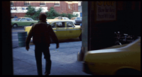 – czasem jedynym wyjściem z sytuacji jest wcześniejsze, niż wynika to z ogólnych reguł montażu, ucięcie ujęcia – jak w poniższym przykładzie, gdzie w lewym górnym rogu kadru widać coraz bardziej, odkrywane w panoramie, grożące halacją[21] rozświetlenie odległych ścian budynków (wyjście De Niro z garażu):