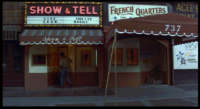 a) naturalne kolory świateł ulicznych, neonów reklam i wystaw sklepowych, kontrasty świateł i ich kolor „nierejestrowalne” przez negatyw; zdjęcia realizowano „w warunkach zastanych” – inscenizowano tylko pierwszy plan aktorski, tło jest autentyczne, tj. niezależne od realizacji, dominuje wrażenie stylizacji na „materiał dokumentalny”, od kamery z ręki i przekrzywionego pionu, po dosyć przypadkowy dobór obiektów i dziejącej się akcji w drugim planie.
